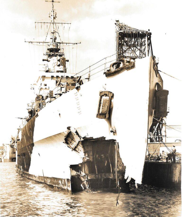 HMS Argonaut showing her damaged bow after being torpedoed Posted on December 14, 2022 by laststandonzombieisland Leave a comment Previous Next Return to Warship Wednesday, Dec. 14, 2022: Getting it Coming & Going