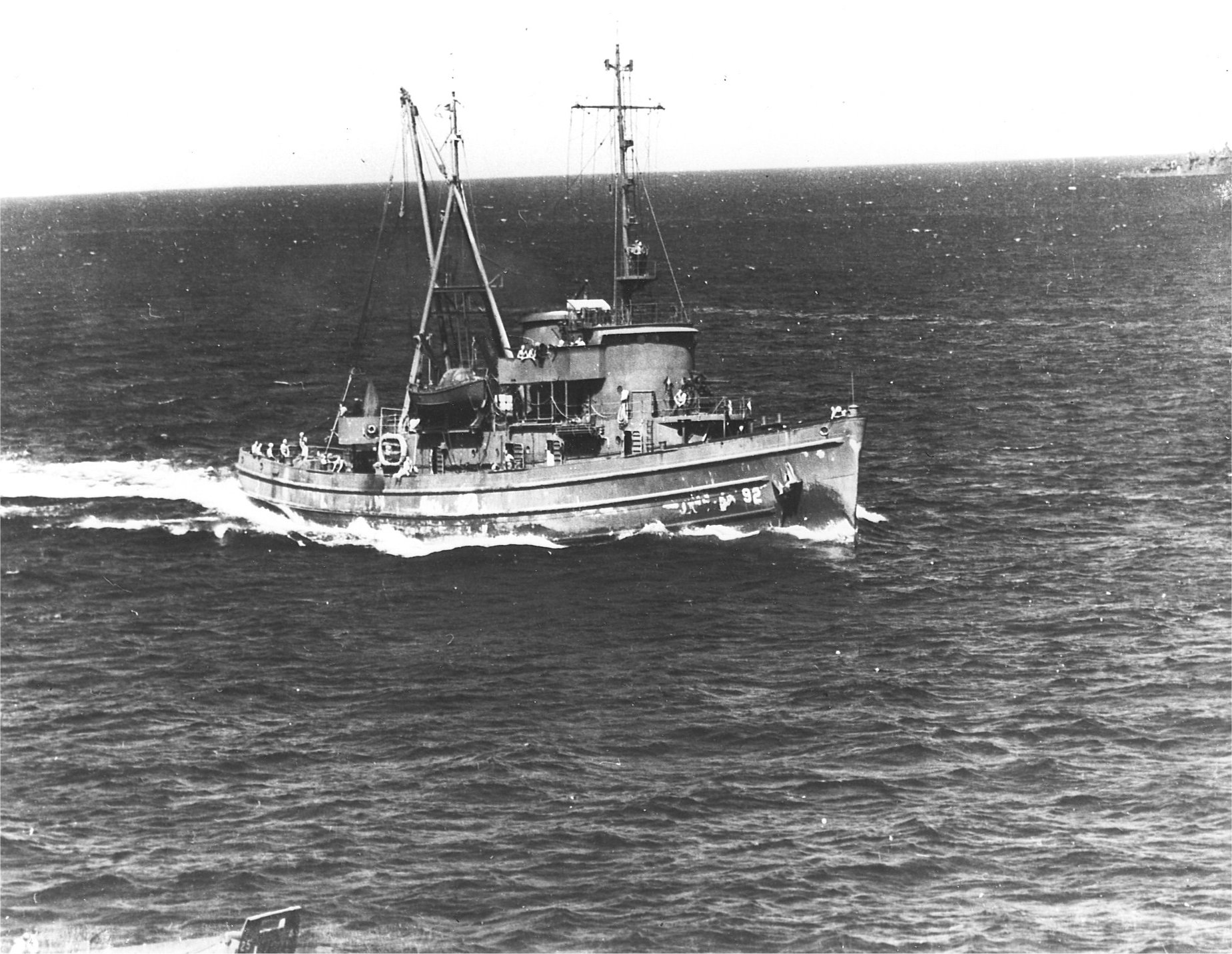 USS Tawasa (ATF-92) underway, circa 1943-1945, location unknown. David Buell for his father CWO4 Benton E. Buell USN, Ret. USS Tawasa Chief Engineer, 1962-63. Via Navsource http://www.navsource.org/archives/09/39/39092.htm