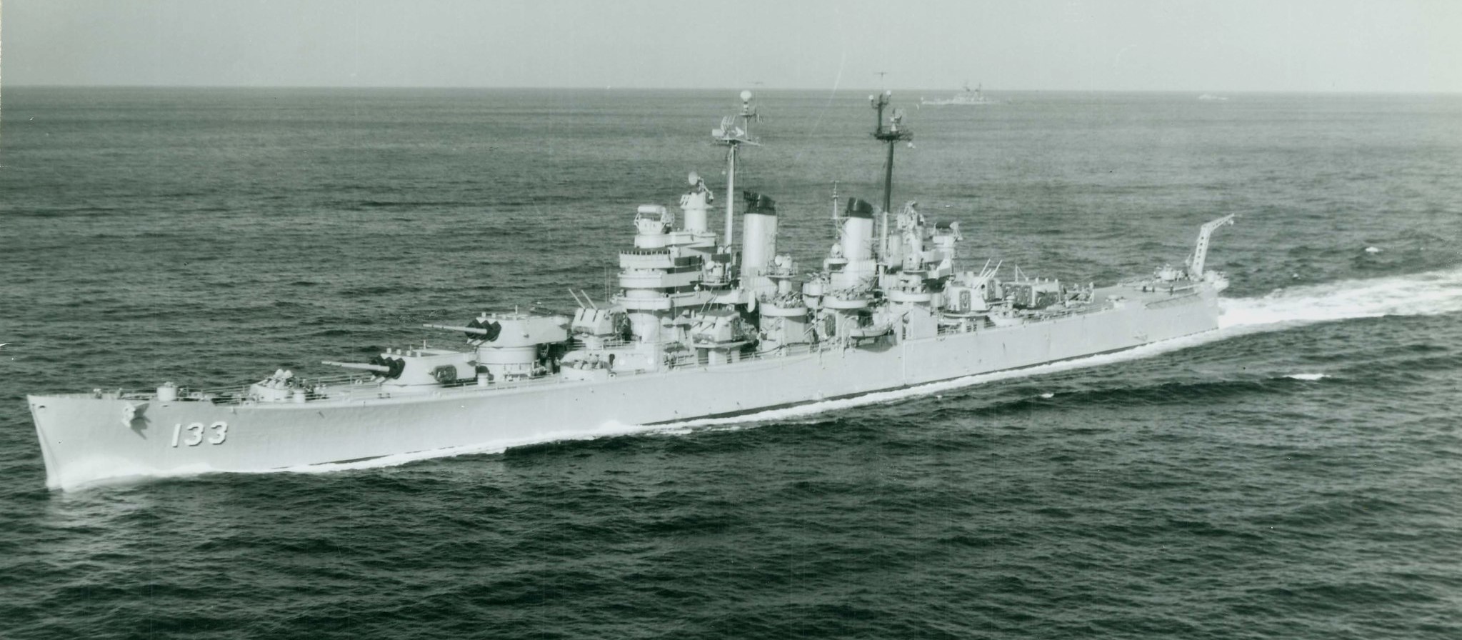 NH 96902 Posted on September 13, 2023 by laststandonzombieisland Leave a comment USS Toledo (CA-133) Underway in Korean waters, with a battleship and a destroyer in the right distance. The original photo is dated 2 November 1952. NH 96902 Previous Next Return to Warship Wednesday, Sept. 13, 2023: Mud Hen Regulus Pitcher