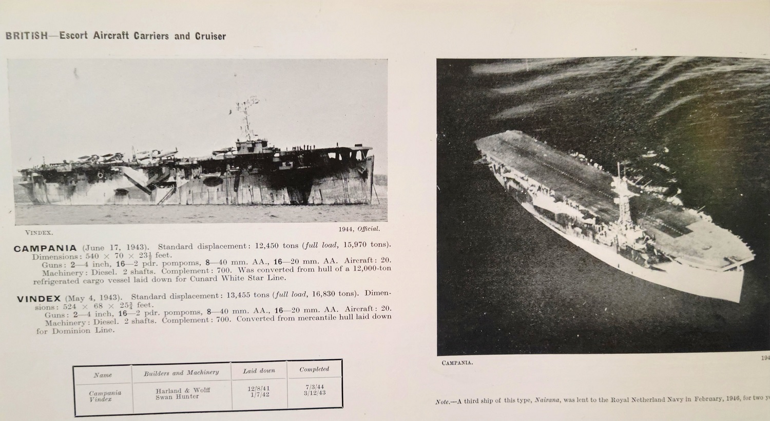 HMS Campania and HMS Vindex 1946 Posted on September 27, 2023 by laststandonzombieisland Leave a comment HMS Campania and HMS Vindex, 1946 Previous Next Return to Warship Wednesday, Sept. 27, 2023: Of Shorts & Hard Charging Jeep Carriers