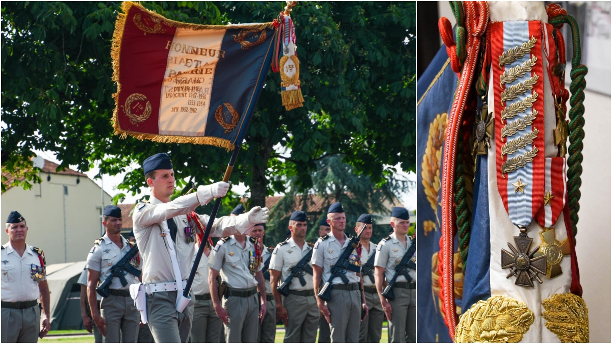 They maintain the French parachutist badge first established in 1937, and their regimental flag has honors for Vosage (1944) Colmar (1945) Indochine (1947-50, 53-54) and AFN (Algeria) 1952-62. Besides the tradtional amaranth (red) airborne beret, they also wear a blue Air Force cap on occasion, to mark the old 601e/602e GIA linage.