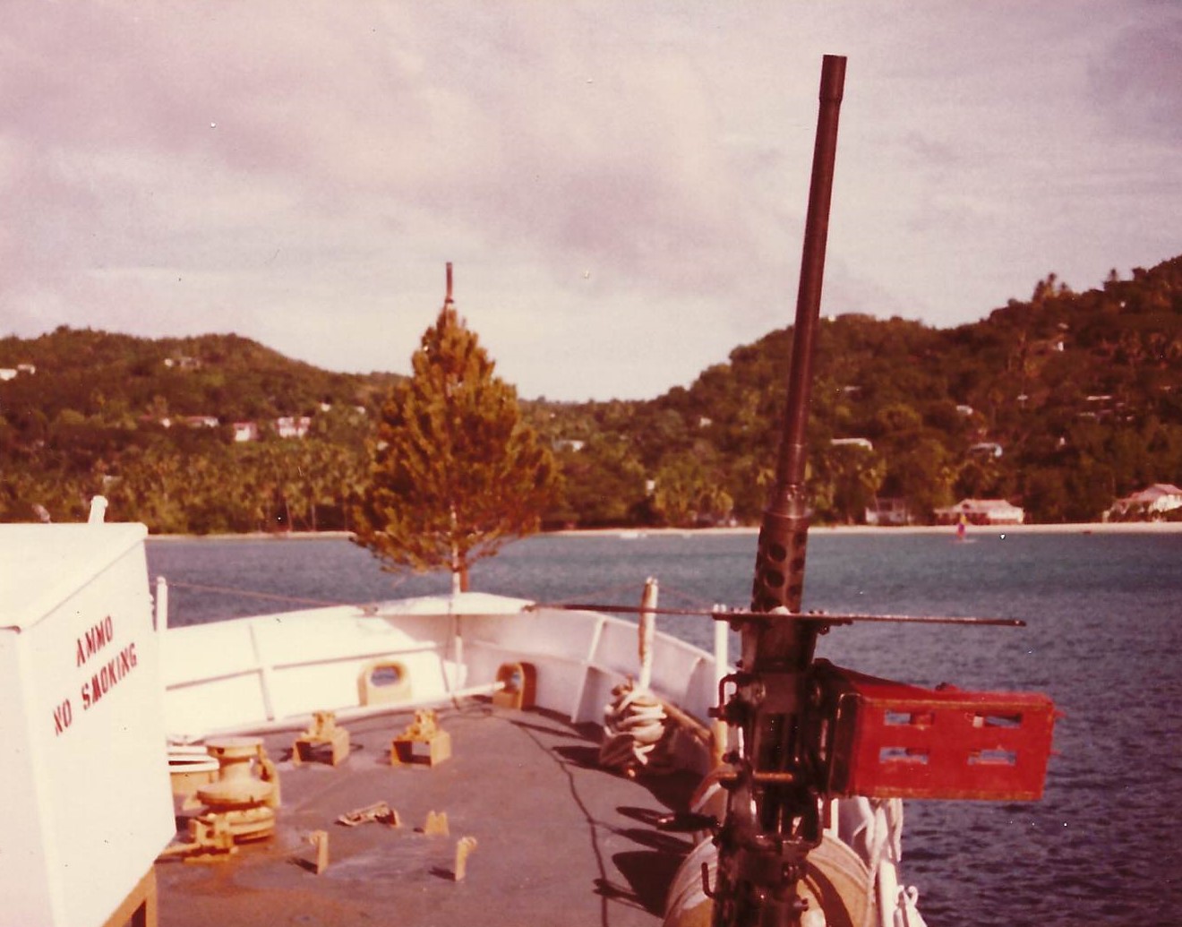 USCGC Cape Fox (WPB 95316) celebrating Christmas 1983 off Grenada Posted on November 1, 2023 by laststandonzombieisland Leave a comment Note the two mounted M2 .50 cals, rare for Capes in the 1980s, as well as the Christmas tree on deck. Previous Next Return to FFH Group & Surveillance Force Grenada, 1983-84