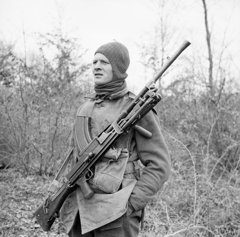 A member of No. 9 Commando at Anzio, equipped for a patrol with his Bren gun, 5 March 1944. IWM