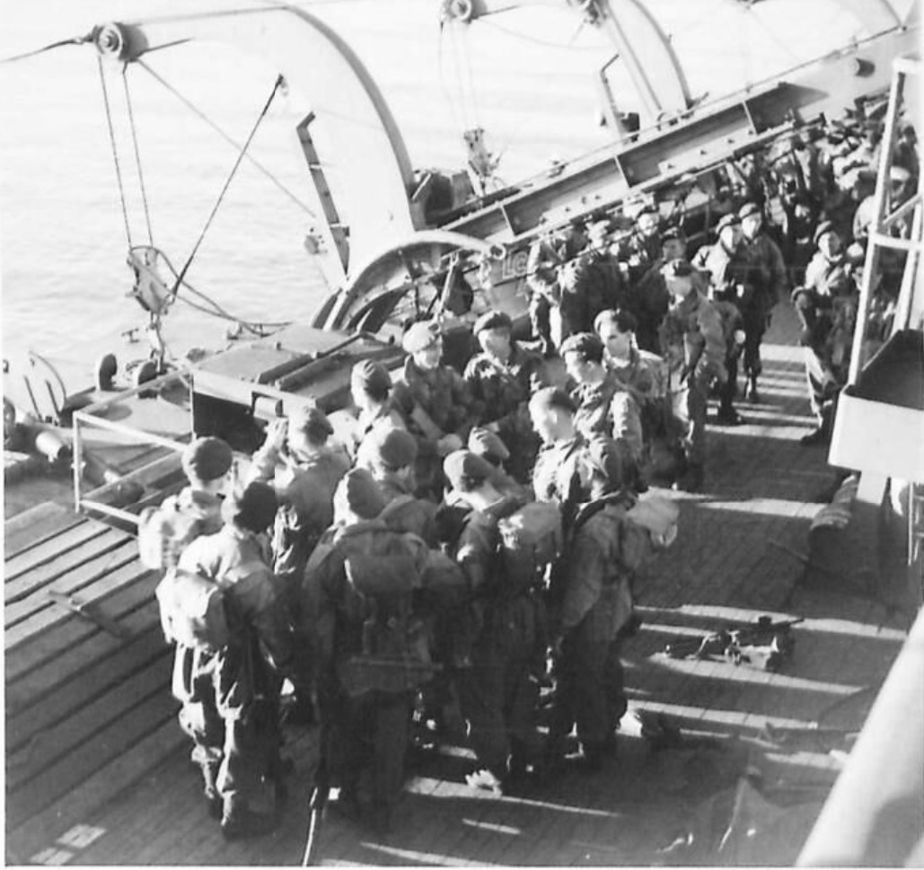 2 Independent Para Bde Group receive last minute orders before disembarking from the Prince David in Greece