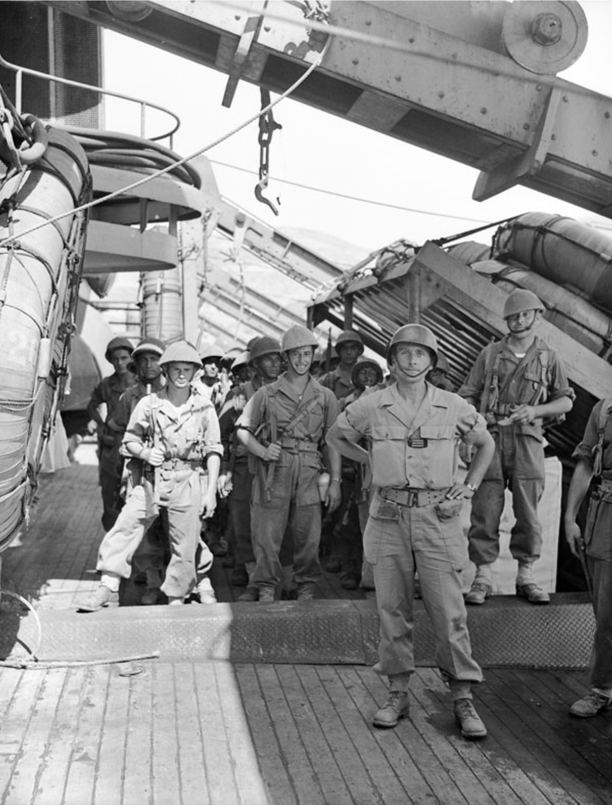 French 1e Groupe de Commandos aboard HMCS Prince David en route to take part in Operation Dragoon, the invasion of southern France, 10 August 1944. Note the mix of American and British kit and the prevalence of M1928 Thompsons. LAC 3525866