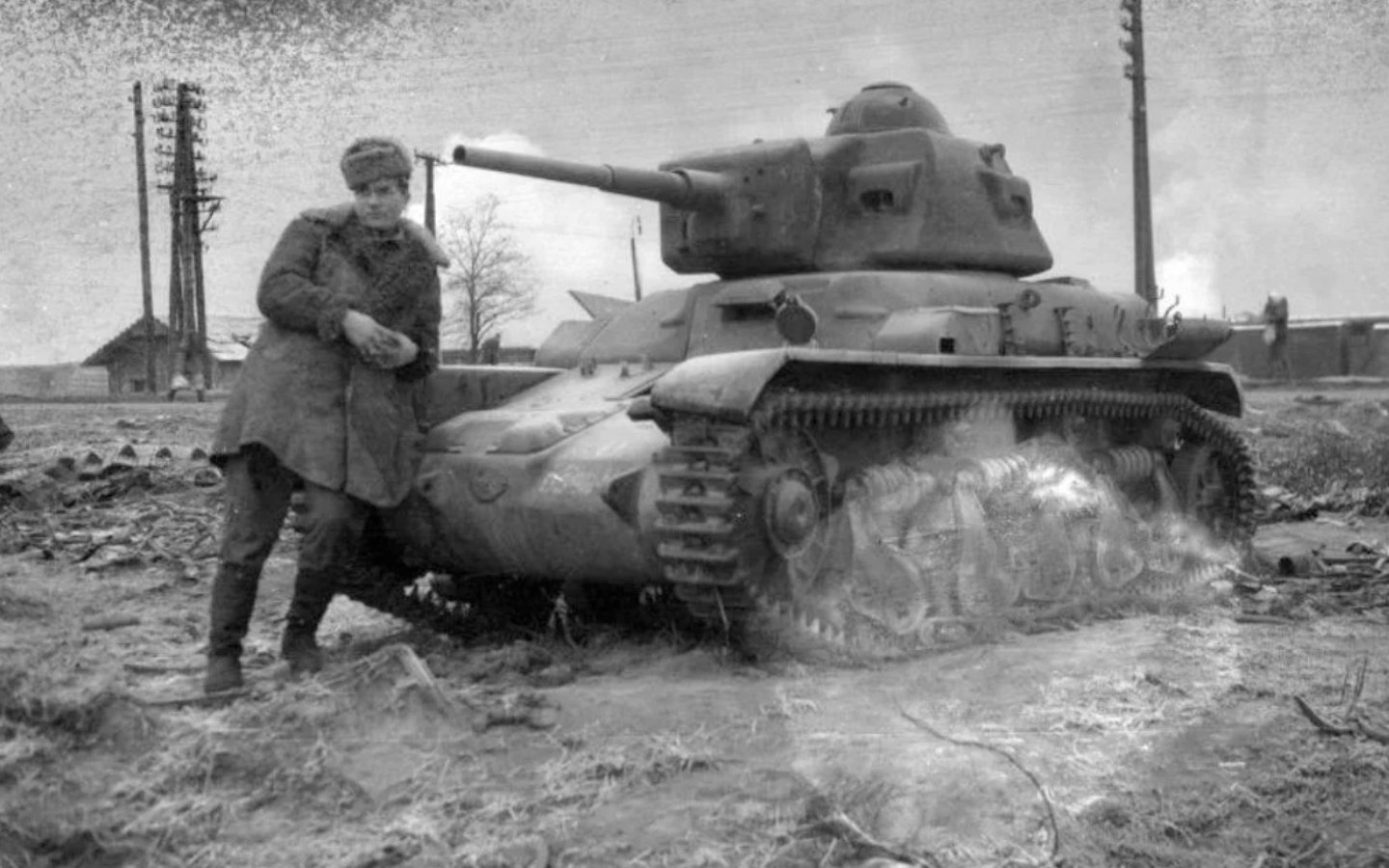 Soviet soldier Romanian Renault R35 45 mm AT gun Posted on August 29, 2024 by laststandonzombieisland Leave a comment Soviet soldier stands next to an abandoned Romanian Renault R35 armed with a captured Soviet 45 mm AT gun, 1944 Previous Next Return to The Last Hurrah of The Third Republic’s Tanks