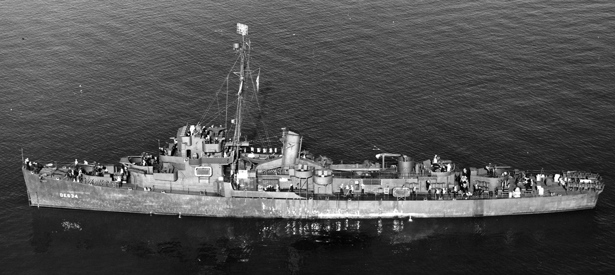 Port broadside aerial view of destroyer escort USS Whitehurst (DE-634) November 30 1949 USN 200669