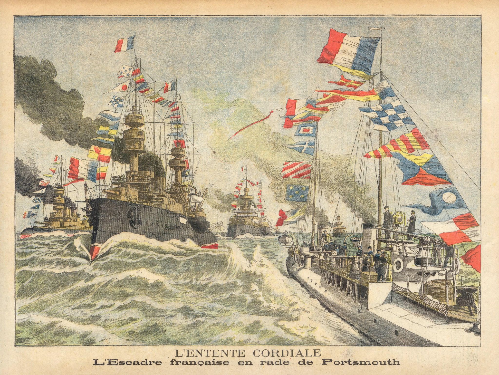Entente Cordiale: The French squadron in Portsmouth Harbor – from the French magazine Le Petit Journal, August 13, 1905.