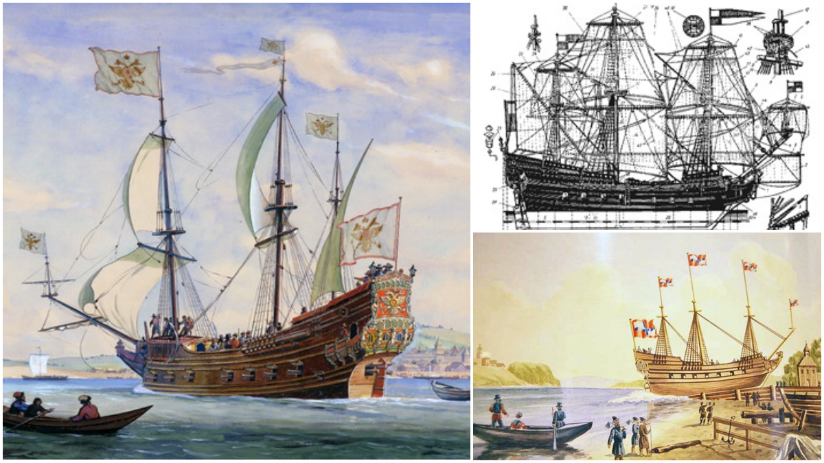 The original three-master Orel, a frigate in Russian parlance, was the first sea-going Russian warship. Today, the ship’s profile is the emblem of St. Petersburg. Likewise, her contracting date, 29 June, is celebrated annually as “Shipbuilder’s Day” (Den’ sudostroitelya) in Russia.