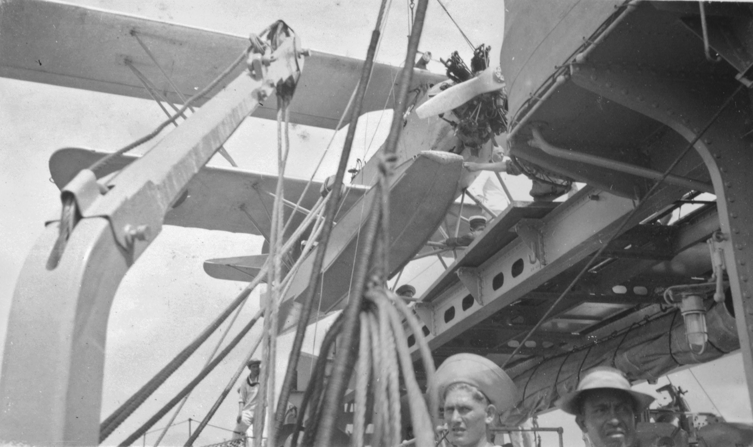 The seaplane of the Admiralen-class destroyer Hr.Ms. Witte de With at anchor at Kupang, Timor, September 1934. 2173-223-014