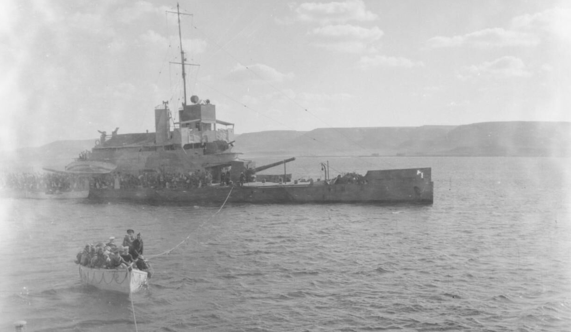 31 December 1940. “A visit to a company of Free French in the Bardia area, troops landing on the coast from a warship.” HMS Ladybird. stationary with a small boat in the foreground. Photo by Capt. Geoffrey John Keating, No. 1 Army Film and Photo Section, Army Film and Photographic Unit IWM (E 1538)