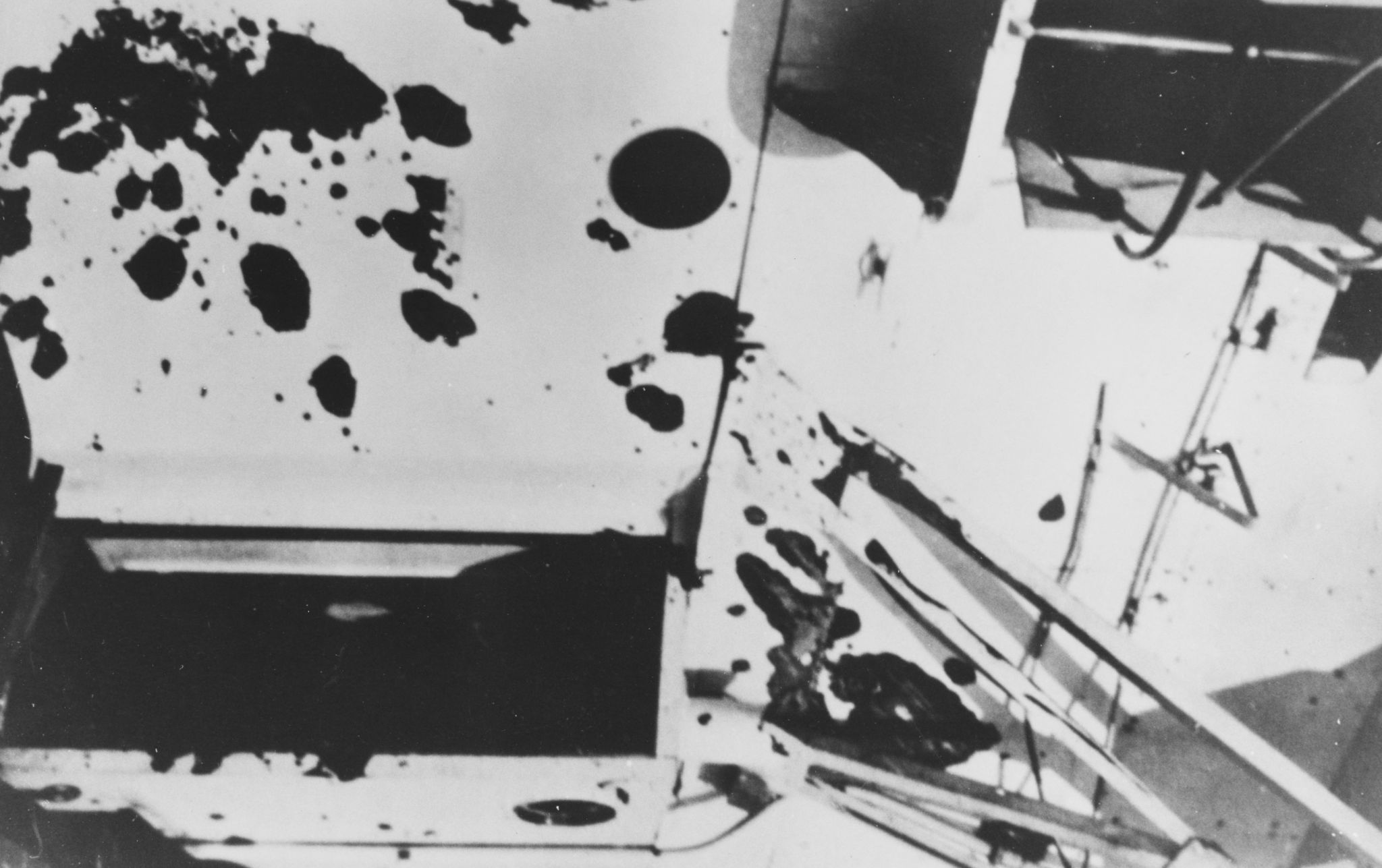 HMS Ladybird, view of the damage on the port side sustained in an artillery attack by a Japanese Army battery on 12 December 1937, the same day as the USS Panay (PR-5) sinking. Courtesy of Vice Admiral Morton L. Deyo, USN (retired) NH 77816