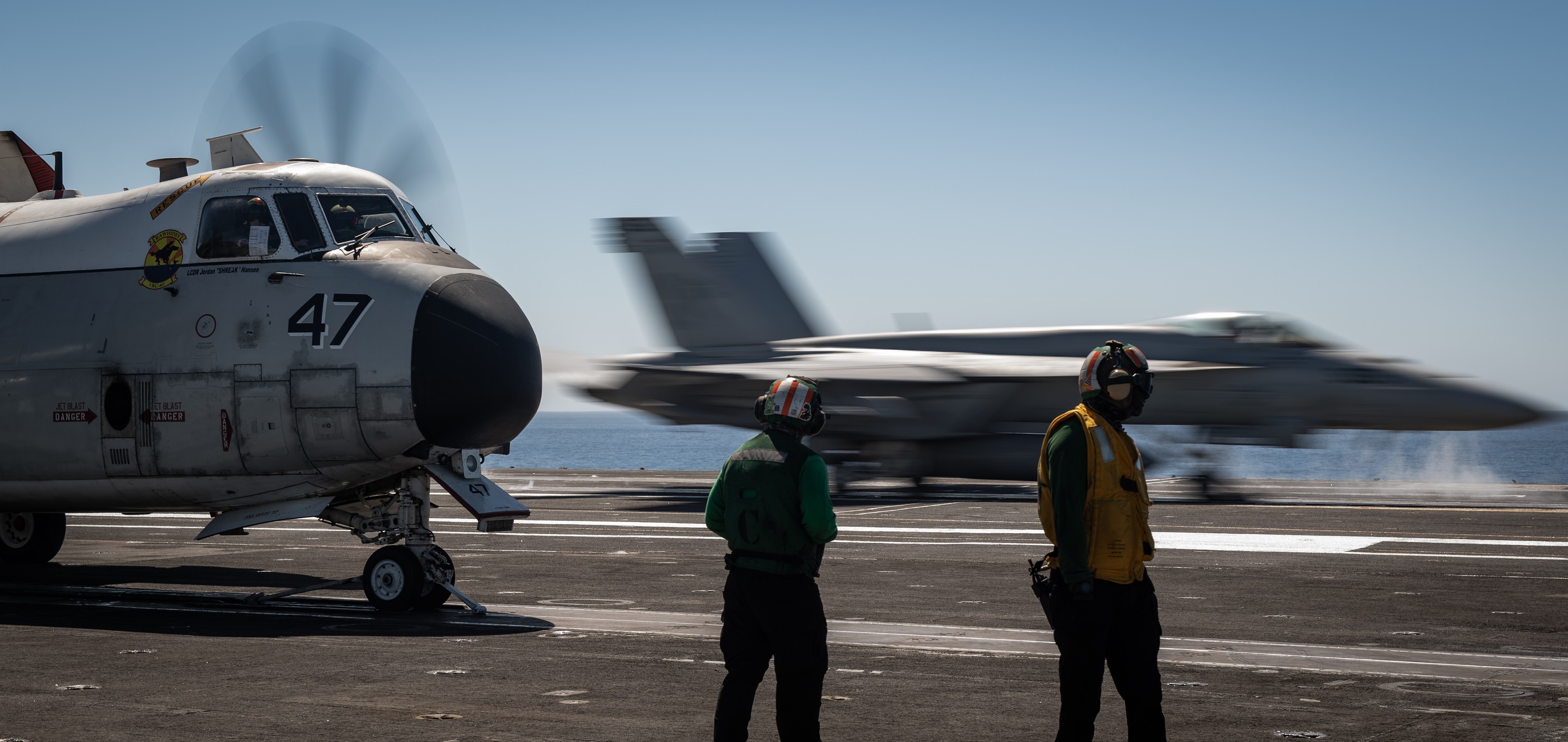 An F/A-18E Super Hornet, attached to the “Kestrels” of Strike Fighter Squadron (VFA) 137, launches from the flight deck of Nimitz-class aircraft carrier USS Nimitz (CVN 68) during flight operations in the Pacific Ocean, March 19, 2026. Nimitz is underway in the U.S. 3rd Fleet area of operations as part of a scheduled homeport shift to Norfolk, Virginia. (U.S. Navy photo by Mass Communication Specialist 2nd Class Timothy Meyer)